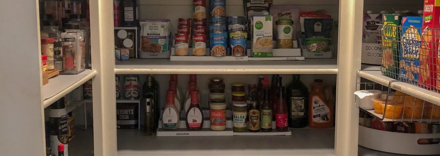 Pictured above is a typical pantry. It is stuffed with all the food necessities and favorite foods of a family. Pantries typically have everything from water bottles to medicines, to pantry staples like cereal and flour.  There are lots of items families use and consume, but often they are not things that everyone puts away in the right place. Then, over time, it becomes a continuous game of trying not to knock over the front items when reaching for the items in the far dark corners in the back.